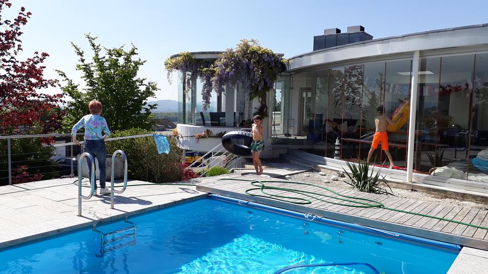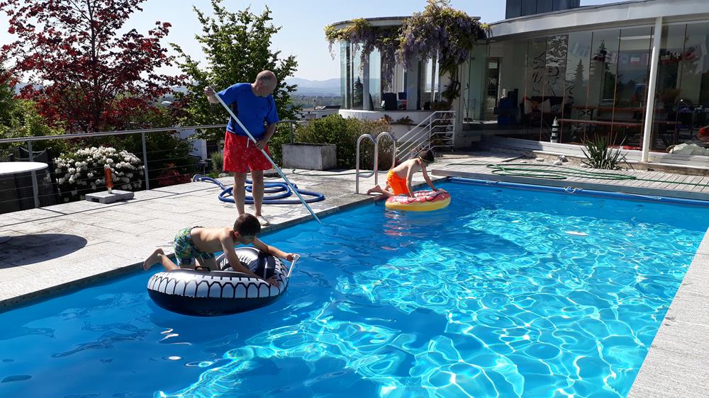Während die einen baden, machen die anderen den Garten sauber und machen Zvieripause.